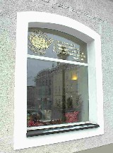 o Der neue Laden befindet sich in einem historischen Haus mit eindrucksvollem Renaissanceportal und schönem Gewölbe.
